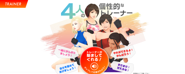 在設定中四個健身教練有不同的性格,包含溫柔和嚴厲屬性,滿足那些想去健身房卻懶得出門(X)沒有時間的上班族,另外,該遊戲為確保「效果」,其中的運動指導以「FiNC」日本知名的跨媒體健身類作為標準,該品牌以「私人教練 AI(人工智慧)」與數據化的生活履歷取得多種獎項。