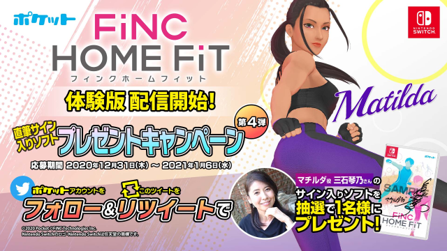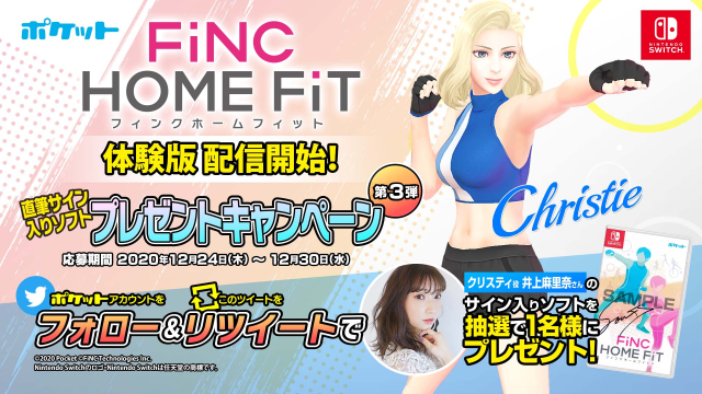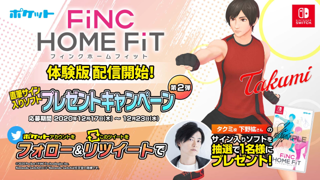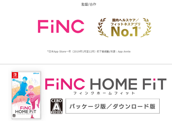 《FiNC Home FiT》是一款真正的格鬥技健身遊戲,跟隨著節奏打擊,以及自選教練進行節奏運動,包含「中國武術」、「泰拳」、「拳擊」、「空手道」收錄,而該遊戲自10月29日發售後便以有氧減重與肌肉訓練得到好評。
