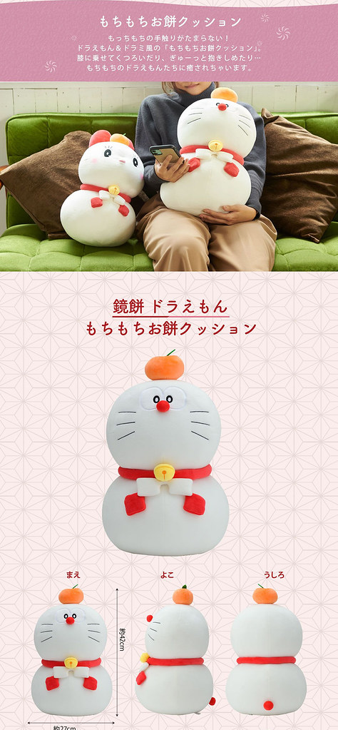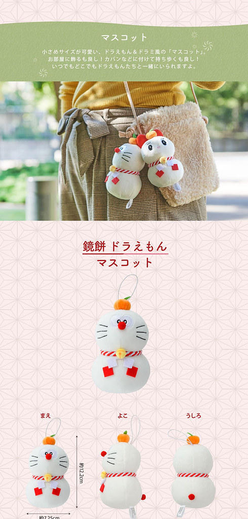 日本郵局在今年度與日本 Ensky (エンスカイ) 株式會社合作推出「ドラえもん50周年 コレクション」的紀念系列之外,這次的哆啦A夢鏡餅布偶也出自 Ensky,將化身鏡餅的哆啦A夢與哆啦美製作為柔軟療癒的布偶~維持可愛的造型不變,各別推出大型靠枕、小型吊飾兩種尺寸,讓粉絲可以抱在懷中一起過冬或是掛在包包帶出門迎新年!