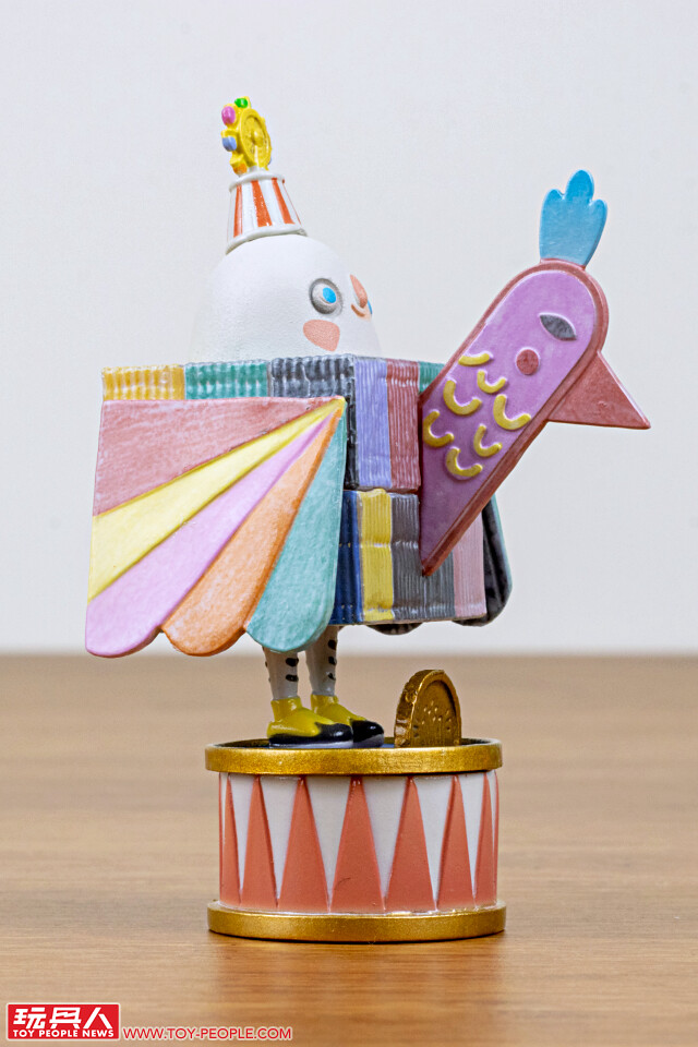 這個快樂表演家,就像是兒時的我們,學到了新的事物尤其是新歌,都會在下課回家之後表演給爸爸媽媽看,小白套上色彩繽紛的紙箱鳥,戴上華麗的小帽,實在太可愛!而且這一款作品還暗藏發光功能喔(採用鈕扣電池、需自備,型號為 AG3/LR41)。