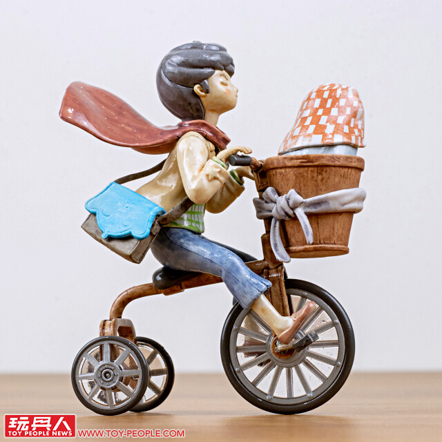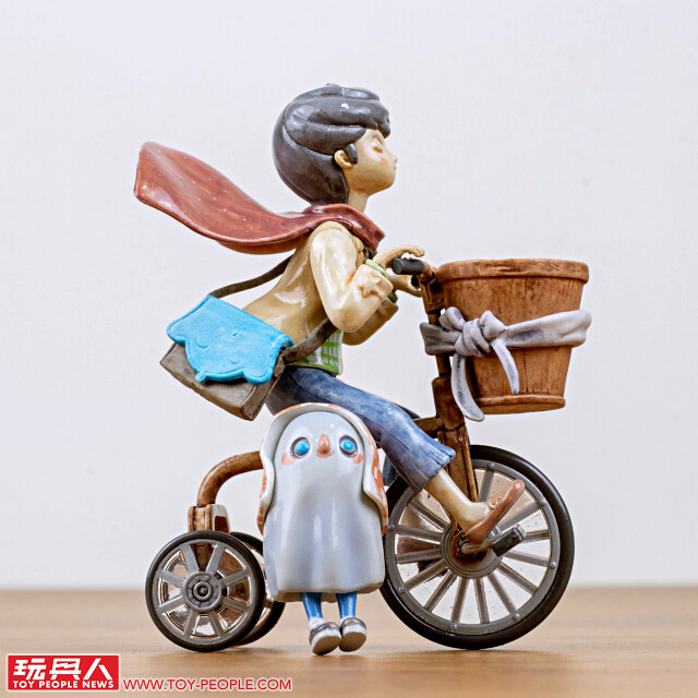再來是小編個人的最愛「我永遠在這裡」!阿pi 騎著三輪車乘風前進,綁在龍頭前面的木桶中有一隻可愛的小白,從男孩本體的細節、圍巾的飄動感形塑、獨立製作的小白,到可以轉動的輪子,都細緻的讓人發出驚呼!