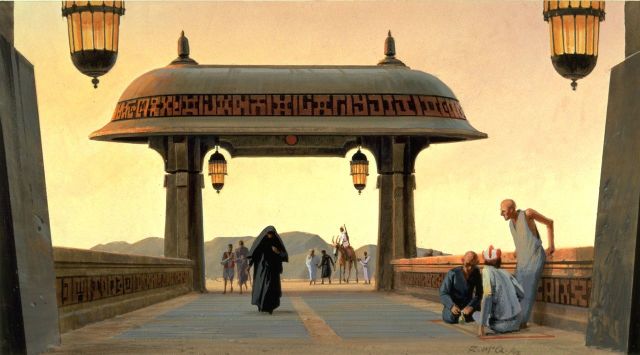 本次的舞台是森林星球烏鴉座,然而很遺憾的,因帝國地方官的暴政,應該美麗的森林幾近覆滅,當地人也飽受壓迫。這座充滿濃濃日式情懷的卡洛丹(Calodan)城市,城門上也可以看到時代劇村莊必備的大鐘,而掛著鐘的結構體實際上是出自當年 Ralph McQuarrie 所設計的塔圖因美術概念圖。刀鋒之巔號著陸時,我們還可看到城牆上有人在監測,這也與第四部曲《曙光乍現》劇中千年鷹號降落雅汶 4 那段的演出如出一轍。