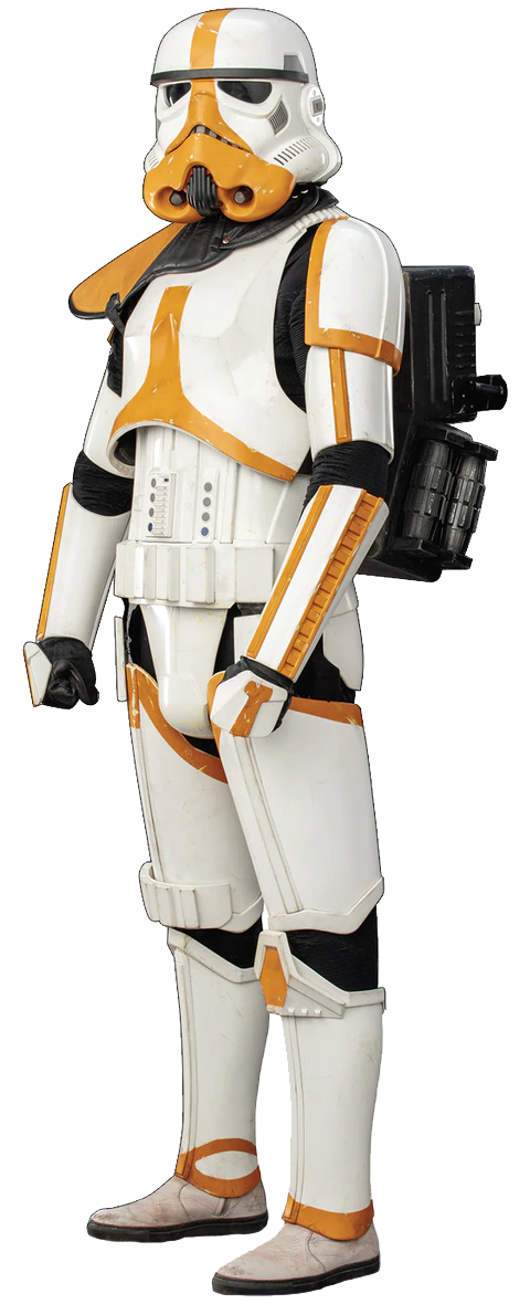 隨著帝國肉靶們…突擊士兵們紛紛登場,我們終於能見到波巴費特驚人的肉搏戰,事實證明即便沒有曼達洛盔甲,他也絲毫不愧對傳奇賞金獵人的名號,僅僅一把突斯肯沙人的加德菲棍,在波巴手中就成了極度致命的武器。這群帝國兵之中,有一名身上帶黃色條紋,這是新登場的兵種,官方目前似乎將之命名為迫擊砲突擊士兵(Mortar Stormtrooper)。
