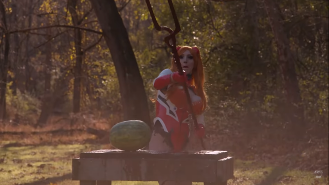 ▼影片最後最精彩的實戰,但這把武器顯然對明日香來說有點太大