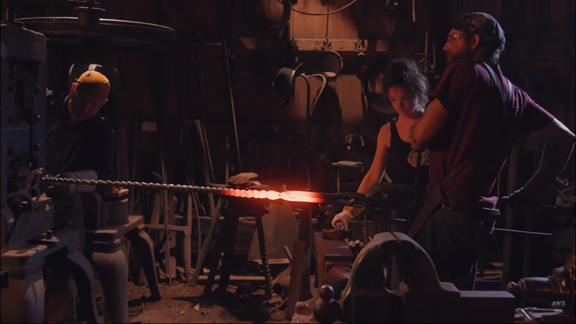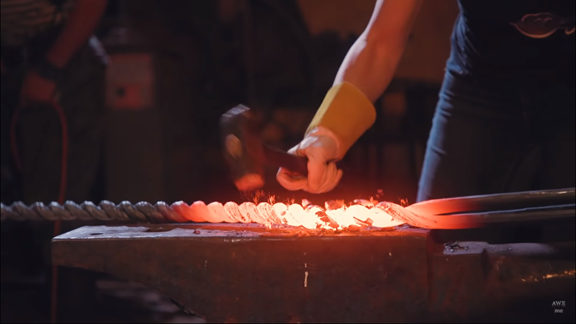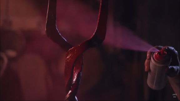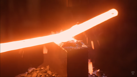 MAN AT ARMS 第 3 季 • 第 1 集中,該影片中雖然沒辦法還原一如巨大機器人的磅礡,但也在「旋轉」鑄造過成中,讓粉絲回想起動畫中兩根質桿扭曲,並突破力場的經典畫面,搭配最後上漆的鮮紅實在魄力驚人。