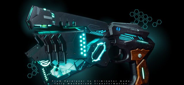 《心靈判官》(日语:PSYCHO-PASS サイコパス) 世界觀中使用該設備,並搭配希貝兒系統分析「犯罪係數」,借此取締或制裁可疑份子,而過程中隨係數判定對象危險程度,進而改變機身構造成為賣點,從「非致命、麻醉槍」形態變成「致命、排除槍」、「摧毀、分解槍」等帥氣多形態。