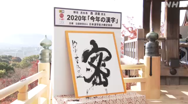 日本一年一度的年度代表漢字於今日出爐,由日本京都清水寺的貫主森清範於下午親自揮毫寫下「密」字,作為 2020 年日本年度漢字。