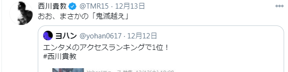 雖然身高不突出,卻擁有20多年健身資歷的西川貴教,本次在《BEST BODY JAPAN》榮登50-59黃金級別組冠軍(金牌得主),並被譽為「日本最美身體」,而其聲量甚至來到新聞第一名,打敗《鬼滅之刃》煉獄杏壽郎流量神話,同時有不少健美圖片公開。