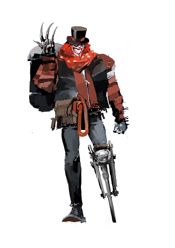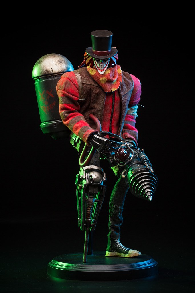 充滿衝突張力的故事,正好讓 Ashley Wood 大大發揮,從原畫中就能從更加張狂的假笑,看見毫無掩飾的惡意,展現充滿了暴躁不安的侵略性與攻擊性。半人半機器的金屬義肢,讓整體帶有衝突卻又呈現平衡的美感。