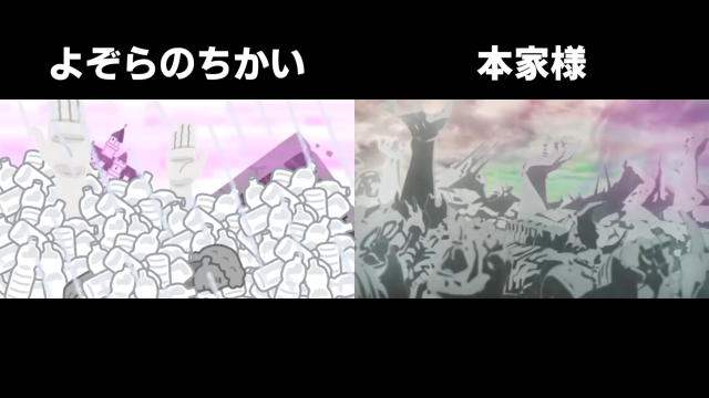 也因此,在網路上不少有人將OP曲〈僕の戦争〉套近二戰時期的畫面,或是利用反白效果加重戰爭的恐怖感…等等,當然在這些二創當中,也有著十分有趣且另類的影片創作。