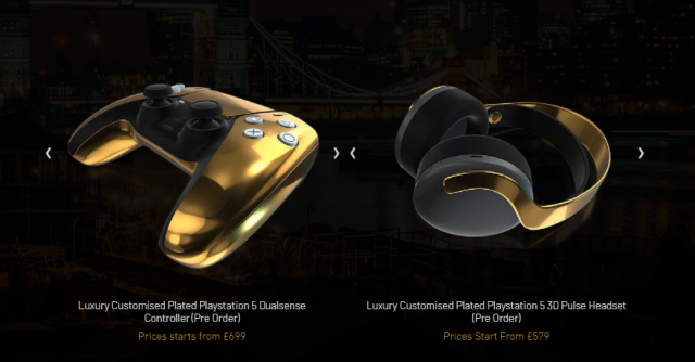 另外,只有你買不到,沒有你想不到,除了主機之外連配件也有,例如鍍金PS5耳機479英鎊(台幣18230);鍍金PS5 的DualSense 無線控制器手把699英鎊(26603),比普通的主機還高昂啊!!!