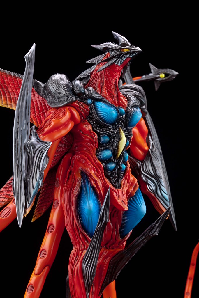 「超激造 邪神伊利斯」以全高約 26 公分的尺寸雕塑出完全體伊利斯,底座部份運用火焰特效透明零件,表現伊利斯矗立決戰場地京都火海的意象。造型細膩刻畫出外露的肌肉、銀色甲殼、長槍般的雙臂、背部翅膀...等細部紋路,展開的四根觸手彷彿準備襲擊,極具氣勢。