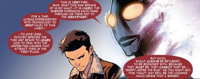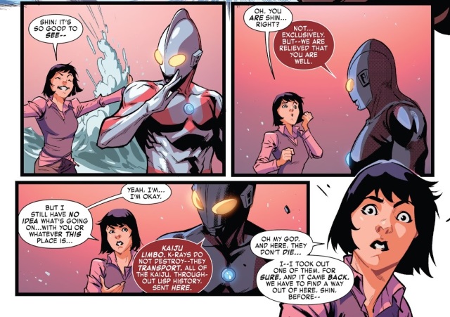 其實看到貝姆拉出現,大概可以猜測這只是漫威版《超人力霸王》的序曲而已(別忘了除了尚未解決的「怪獸墓場」外,當年的諸星跟超人七號還是下落不明,這或許是後續故事中的一個伏筆),然而漫威版中的 USP 作風很明顯令人失望,或許在之後的故事中,早田/超人力霸王並不會以 USP 隊員的身分登場...