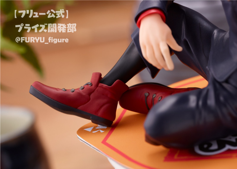 「虎杖悠仁 泡麵蓋模型」,將身穿咒術高專校服、搭配連帽領口造型的虎杖悠仁立體化,雖然臉部表情相當微妙,但是招牌的刺蝟頭和服裝等細節還是有不錯的表現,尤其是放鬆的手指動作與紅靴子。就讓長得有點特別的虎杖用拱起一隻腳的隨興坐姿,幫你好好壓著泡麵吧~