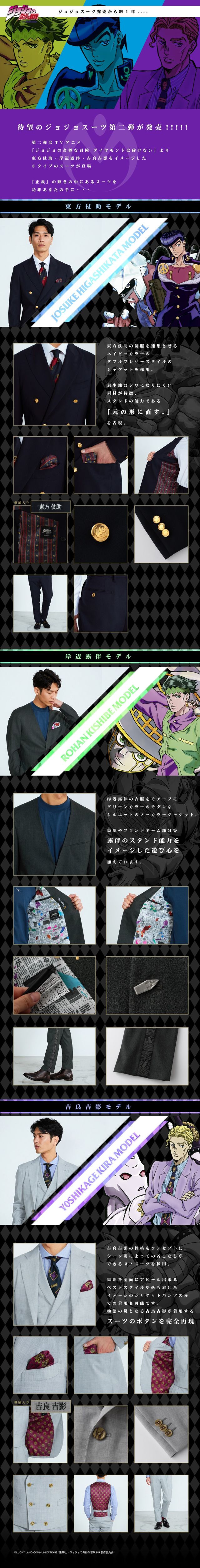 日本萬代旗下專門推出動漫服飾的BANDAI APPAREL STOR(バンダイアパレル ストア),將推出以大熱門動漫《JOJO的奇妙冒險》第四部 不滅鑽石 人氣第二彈系列服飾—西裝外套、西裝褲領帶、領帶夾等超潮服裝&配件。