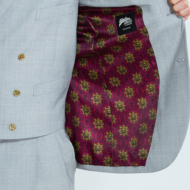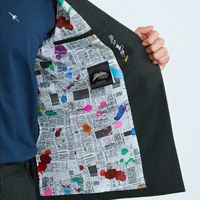 以火紅的角色:東方仗助、岸邊露伴以及吉良吉影為靈感,在西裝外套中融入角色元素、打造屬於JOJO的潮流時尚!簡約的剪裁與質感的設計,將花俏華麗的圖樣與花紋等,低調藏在西裝內襯、鈕釦等細節處,整體俐落大方,即使是正式場合也能穿,更顯特色與品味~
