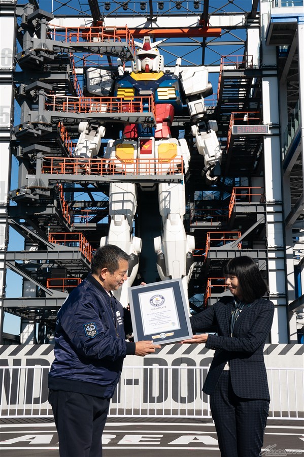 12 月 17 日時 GLOBAL CHALLENGE 代表理事宮河恭夫已於「GUNDAM FACTORY YOKOHAMA」園區內參與認證儀式,「Largest mobile humanoid robot(最大的可動人形機器人)」、「Largest mobile humanoid GUNDAM(最大的可動型鋼彈)」兩項紀錄的數值為 18 公尺。宮河恭夫表示「實在沒想到這一生能夠獲得金氏世界紀錄的認證,請大家務必要親自來一趟橫濱,觀賞這架獲得金氏世界紀錄認證的實物大可動鋼彈!」 。