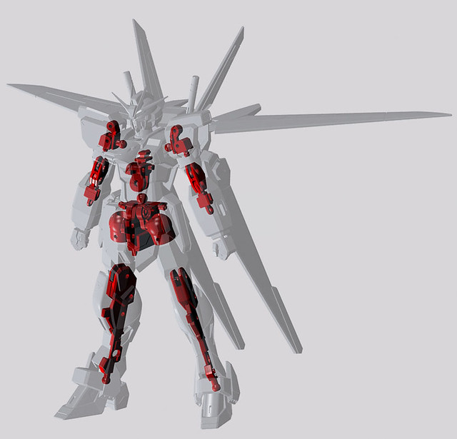 武裝部份包含「威力型背包」、「機動防盾」、「高能源光束步槍」、「折疊式雷射對裝甲刀X2」、「光束軍刀特效零件X2」、「雷射對艦刀(自由鋼彈擊墜VER.)」、「雷射對艦刀特效零件」等。威力型背包的機翼為可動規格,可隨姿勢調整角度,再現高機動戰鬥的姿態。
