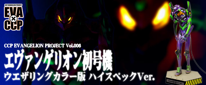 CCP「初號機 新塗裝版」,由擅長高品質雕像立體作品的 CCP 擔任造型,尺寸全高約330mm,真實再現初號機的機體細節與初號機瘦長的身型比例,微微弓著背、傾身踏步向前的姿態,背上插著臍帶電纜線,帶有準備迎戰的壓迫感!除了整體塗裝更加接近新劇場版中的偏藍色調之外,底座也換上了充滿 EVA 風的 NERV 配色。頭部(眼睛)與底座內置有 LED 光效,呈現出夜間戰鬥的模樣!