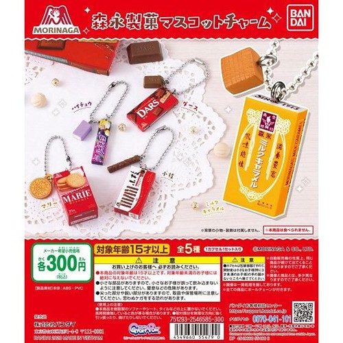 日本萬代公司(株式会社バンダイ)轉蛋事業部 GASHAPON 與知名森永製菓株式会社合作,將森永旗下的人氣零食轉蛋化,推出「森永製菓珠鍊吊飾」(森永製菓マスコットチャーム)轉蛋,一共有五種款式,一轉參考售價為 300 日圓,將於 2020 年 12 月下旬發售。