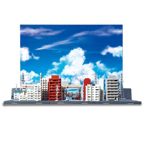 建築 高約30至50 mm,電線桿 高20至約30 mm,道路 寬約90 mm,背景 高210mm