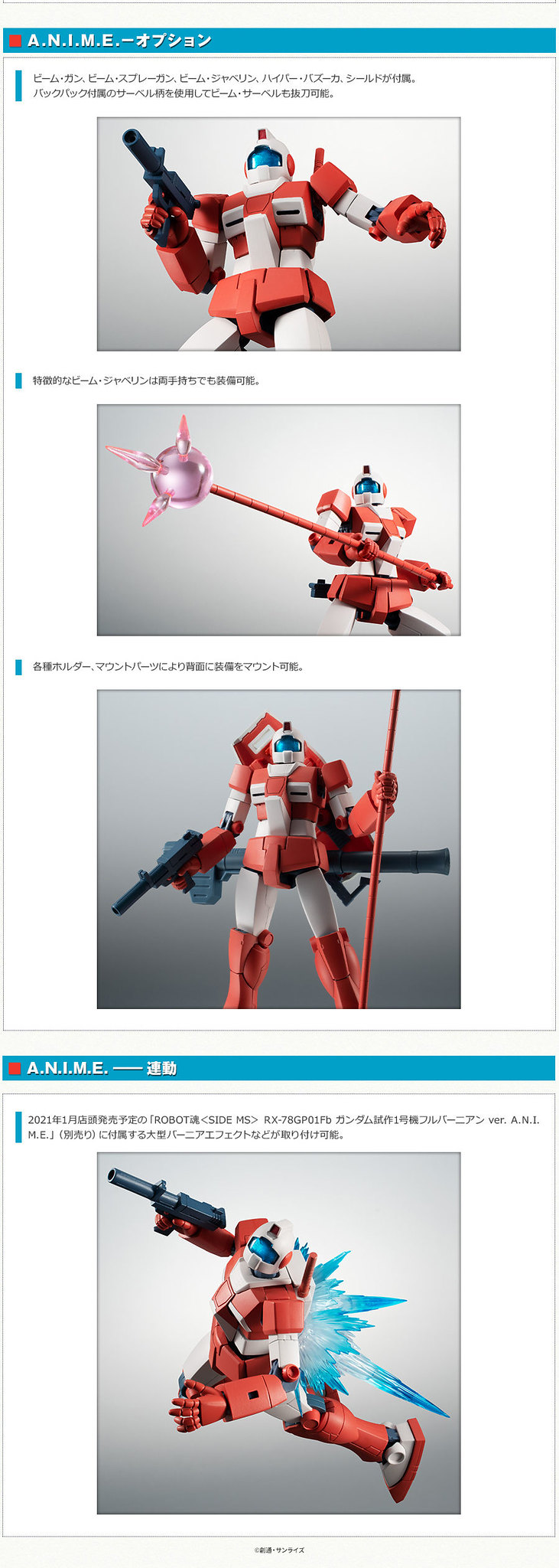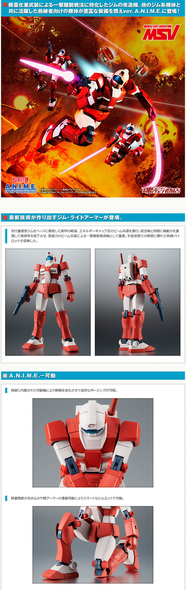 由日本 BANDAI SPIRITS 公司收藏玩具事業部 TAMASHII NATIONS 發行的機人主題可動完成品『ROBOT魂』系列今(25)日發表了出自《機動戰士鋼彈MSV》的最新商品「輕裝型吉姆 ver. A.N.I.M.E.」預計於 2021 年 05 月發售的消息。