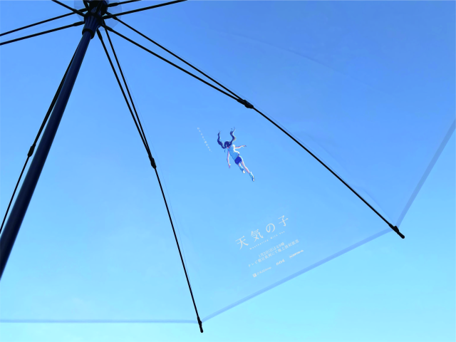 舖設在池袋車站、新宿車站、代代木車站三個東京車站,傘的設計也非常特別,以《天氣之子》宣傳海報中,女主角天野陽菜飄浮在空中的模樣,放在透明傘面中,撐開時就可以看到飄浮在空中的陽菜。劇情中以東京大雨的劇情為設定,配合這項合作非常合適,也十分佩服官方與 i-kasa 的合作創意。