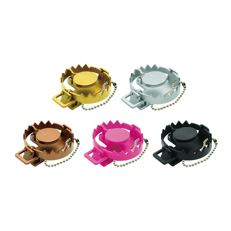 TAMA-KYU「陷阱」(罠)吊飾轉蛋,將捕獸夾微縮復製,以約 45 x 15 毫米的掌中尺寸,完美地再現了真實的陷阱結構,可以呈現出捕獲獵物的趣味場景。採用 ABS 製作,不用擔心會被夾傷,可以放心觸摸~帶有五顏六色的流行色調,分別為:金色,銀色,銅色,粉紅色和黑色一共五款,另外還附有於珠鍊鏈條,可以輕鬆攜帶~