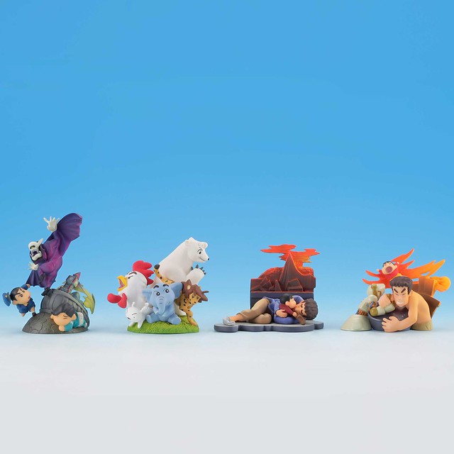 早己經是家喻戶曉的作品《蠟筆小新》(クレヨンしんちゃん),在1993年推出首部動畫電影之後,迄今已經有28部電影推出,最新的第29部作品電影《蠟筆小新:謎團!花之天下春日部學院》也預定將在 2021 年 4 月 23 日上映。這款由海洋堂所推出的膠囊Q博物館之蠟筆小新電影版精選場景系列之第一彈,特別挑選眾多作品中的四部之經典場景加以實體化還原,全高約在 3.5 到 5.8 公分上下,款式共有 4 種如下: