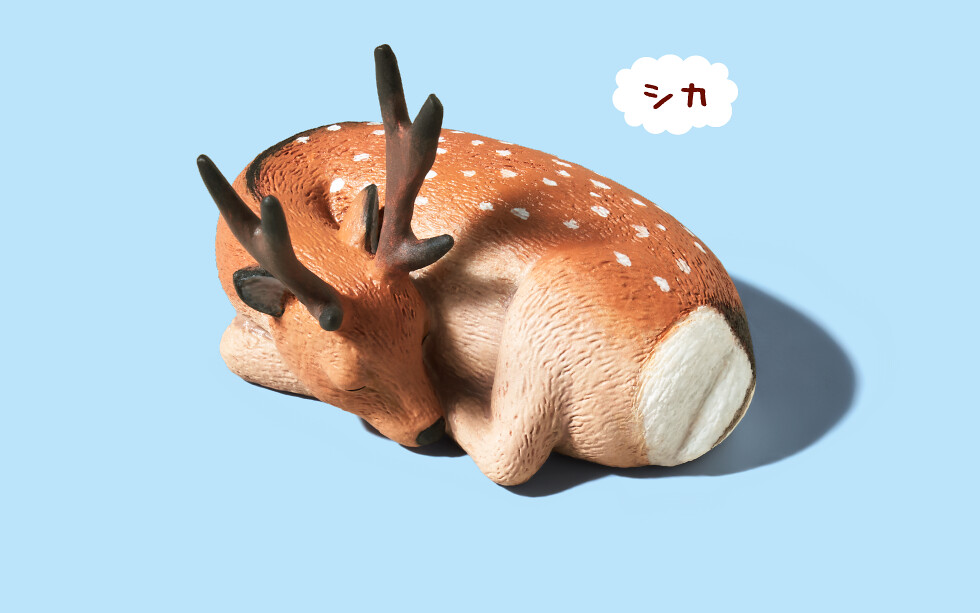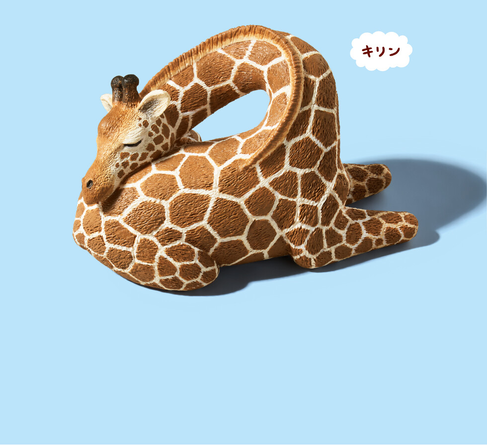 睡眠動物園是讓動物們以各種姿勢睡覺的療癒轉蛋系列作品,本次的「ZooZooZoo 第八彈 まあるく寝」有圓環狀姿、縮成一團睡覺的意味,陣容包含:臘腸狗(イヌ)、黑白貓(ネコ)、狐狸(キツネ)、白鵝(ハクチョウ)、鹿(シカ),以及長頸鹿(キリン)共六種,動物把臉埋進身體裡、縮成一團睡,看起來卻是相當保暖舒服~像是貓咪以雙手遮住臉、狐狸毛毛的尾巴,長頸鹿坳著脖子的安詳睡臉,都非常可愛療癒!