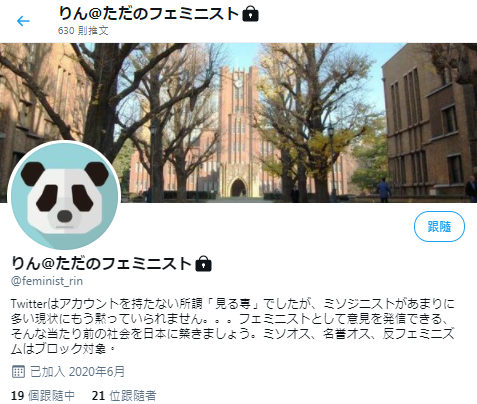 該名「女性主義者」秉持著「有太多人討厭女性主義,所以我不再保持沉默,希望可以建立一個女權能夠暢所欲言的世界…反對者會被封鎖。」而他的帳號目前也保持著「受核准」者才能夠閱覽貼文的權限設定,其貼文卻遭到外流,引發不少日本網友的反彈。