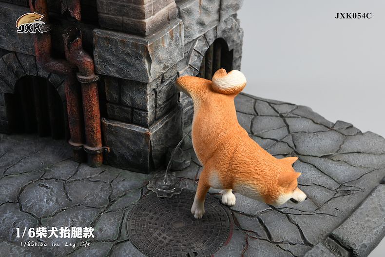 JXK Studio「柴犬抬腿款」塗裝完成品,以超人氣柴犬瞇眼賊賊笑的表情搭配抬腿尿尿的趣味姿態,呈現出正在小便的搞笑模樣~尺寸約為11 x 6 x 9cm,一共有:柴犬抬腿款A(黑柴)、柴犬抬腿款B(白柴)、柴犬抬腿款C(茶色柴)三種款式,細緻刻畫出柴犬身上蓬鬆柔軟的毛,並施以柔和、擬真的塗裝,除了下面的"小柴柴"一覽無遺,還附有透明材質打造的尿尿特效件(?)~清澈的尿尿,健康指數100%啦!