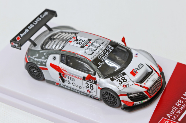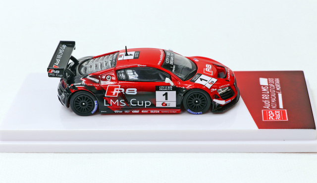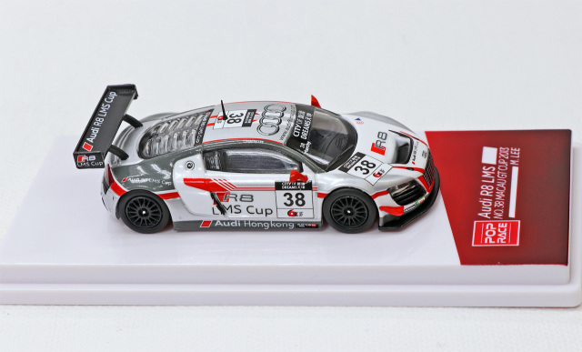 談回這架 1/64 Audi R8 LMS 吧!POP RACE 這個模具還未壞掉...... 普遍每部車的車身細節位及其贊助商圖案移印及拉花位準確,頭燈、尾燈、散熱罩、側鏡、車頂天線、泵把及擾流翼等基本還原了 1/1 的真車外型,車體本身完全呈現了 R8 的霸氣及比例。車身推動尚算順暢,側鏡及車頂天線為軟膠製,故可放心把玩。另內構方面防滾架、中控台甚至 V10 引擎亦完全重現,輪胎車軨等細節亦全部還原了。