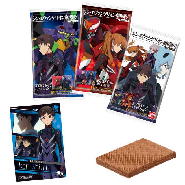 日本BANDAI 萬代玩具公司旗下食玩事業部「BANDAI CANDY」,與近期要上映新劇場版電影的《新·福音戰士劇場版: ||》聯名推出「新福音戰士劇場版 威化餅」,參考售價為一包 120 日圓,已於 2020 年 12 月 28 日發售。