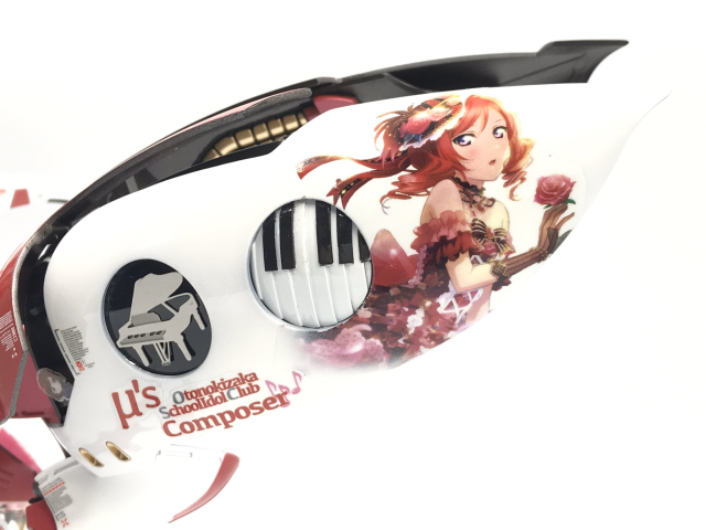 這架「痛邱貝雷」 是融合了《LoveLive!》的西木野真姬的元素在裡面,不但將機體的色系與塗裝都做了改變,經過作者的巧手可以看到許多音樂的元素在裡面,要將這些元素和諧的融入在邱貝雷上真的不容易。