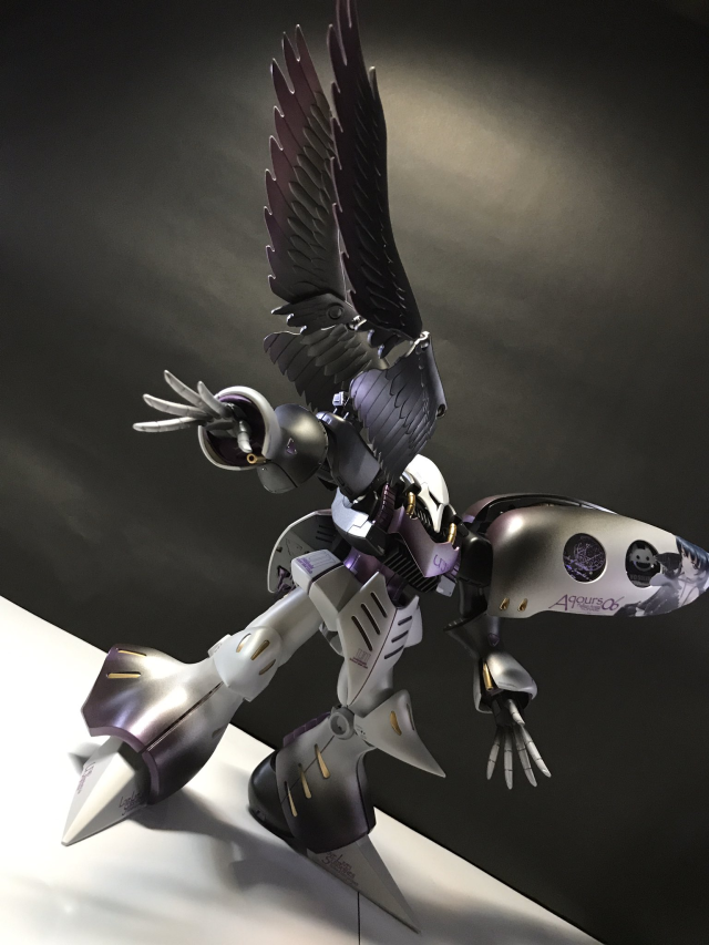 就連背後都不馬虎,許多細節都將真姬的元素精巧的放入其中,作者真的將自己的信仰放到這裡面了 ! 但不知道原駕駛的哈曼大人願不願意登上這架邱貝雷出戰 XD。( 哈曼大喊 : 你要知恥,俗物!)