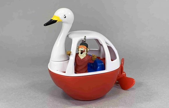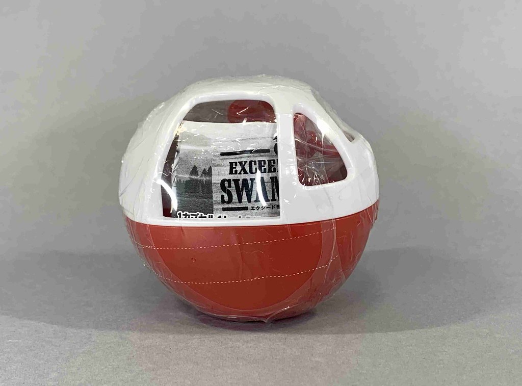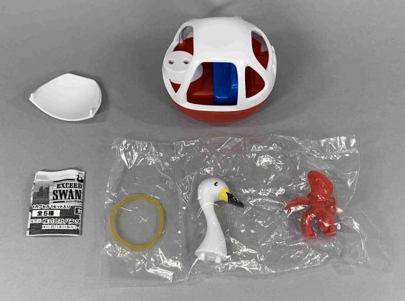 主打超越一般轉蛋水準細緻度的「EXCEED MODEL」系列,以河畔觀光景點中的「踩天鵝船遊湖」娛樂作為靈感,將轉蛋設計為可以組出高約 8.7 公分、而且真的能夠漂浮在水面上航行的天鵝船~透過附屬的橡皮筋作為動力,只要轉動連著橡皮筋的螺旋槳,就能賦予天鵝船向前的動能啦!