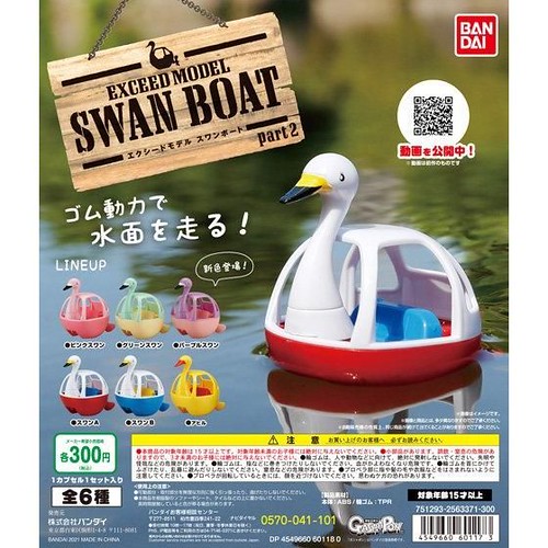 日本萬代玩具公司轉蛋事業部 GASHAPON 推出的「EXCEED MODEL」系列在推出了受到好評的「天鵝船」後,第二彈續作「天鵝船2」(スワンボート2)轉蛋也將登場~,一共有六種款式,一轉參考售價為 300 日圓,將於 2021 年 01 月下旬發售。