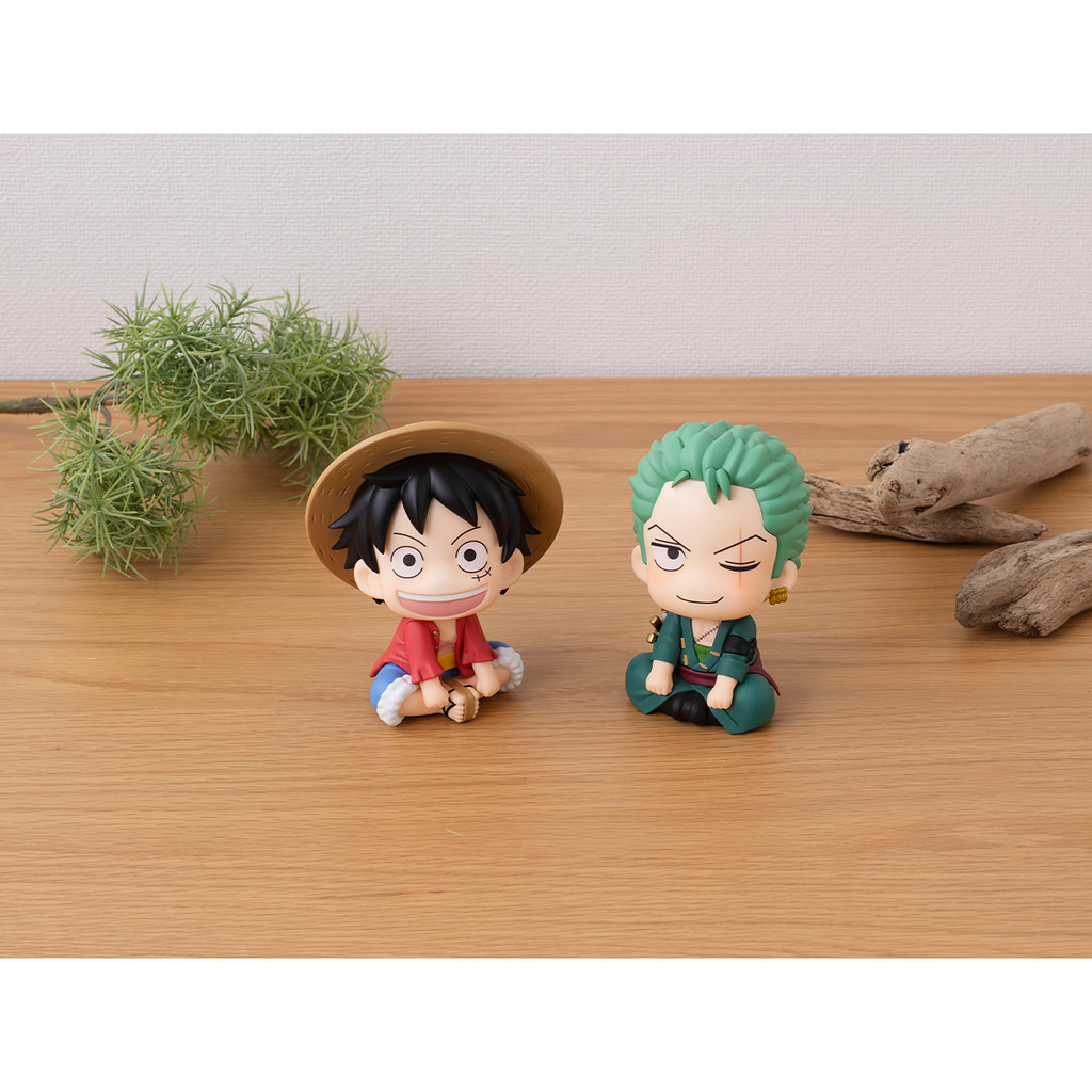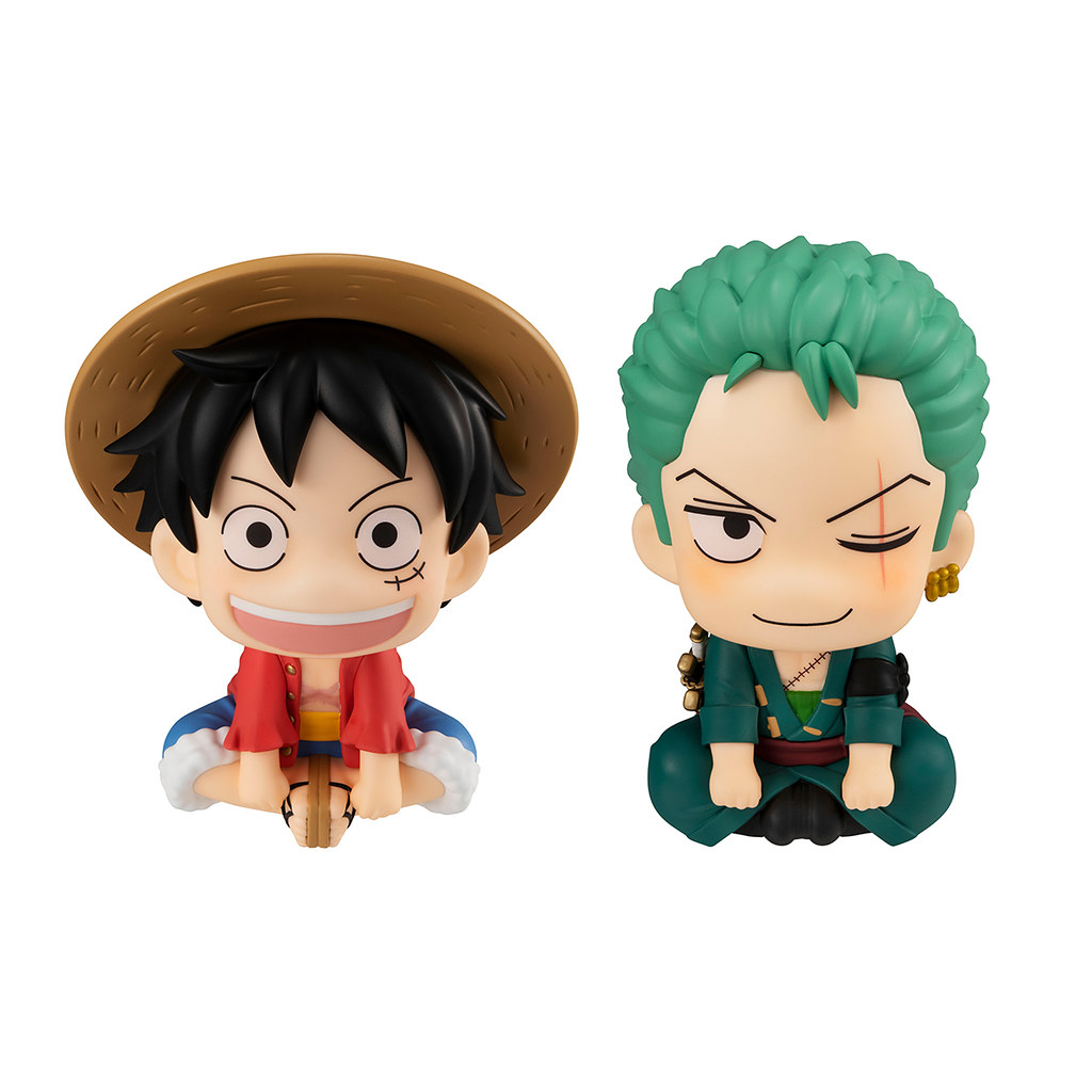 這次將草帽海賊團中的「LOOKUP 蒙其·D·魯夫」、「LOOKUP 羅羅亞·索隆」化為尺寸約 11 公分高的精緻造型~還原了兩位角色的服裝和造型。魯夫輕鬆盤腿坐的姿勢與一雙活力大眼、招牌笑容,整體相當可愛!而魯夫最初的夥伴-索隆則是左眼掛著傷疤,輕鬆隨意的姿態~身上的刀、服裝細節都仔細呈現!在 Megahouse 或 p-bandai 網路商店購買套組,還可以獲得限定的酒肉盛宴特典~