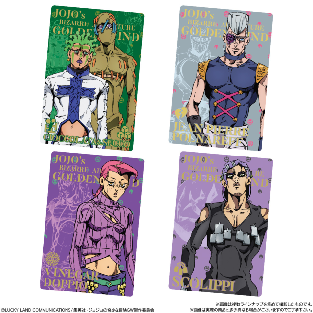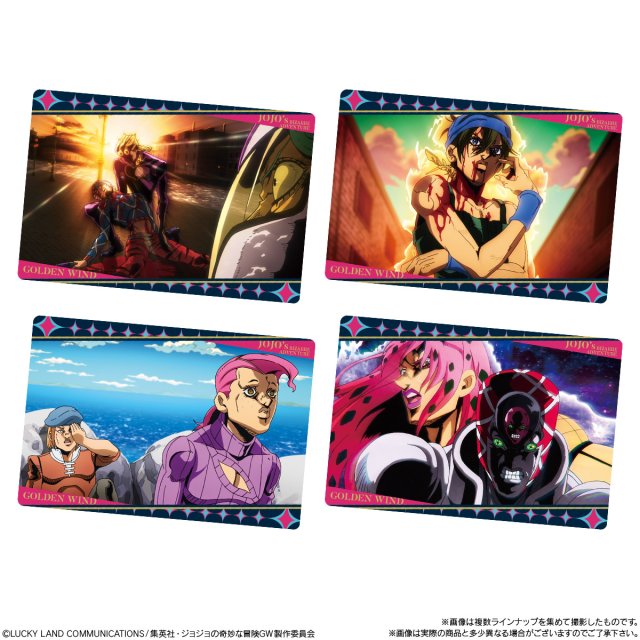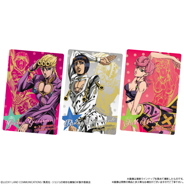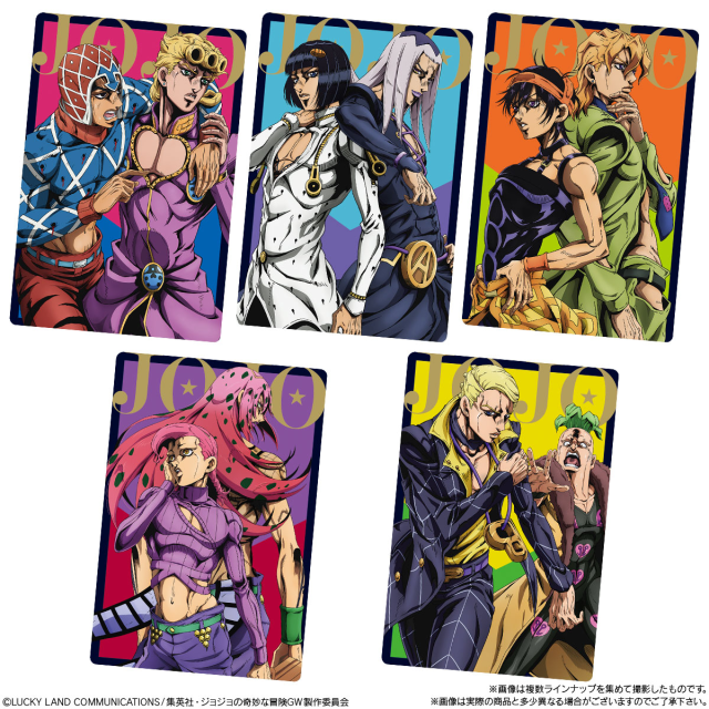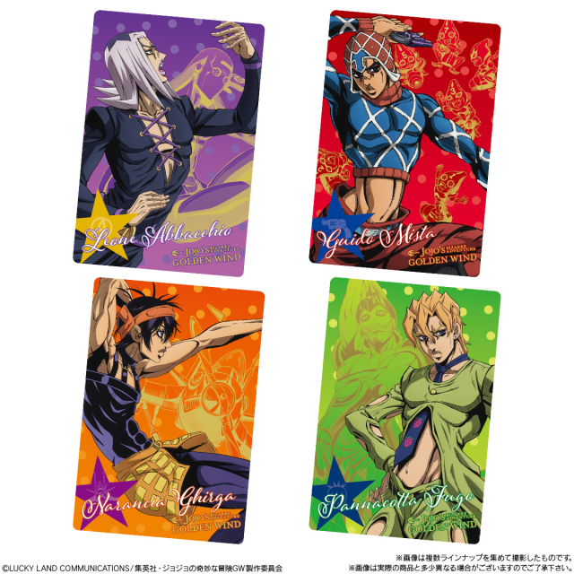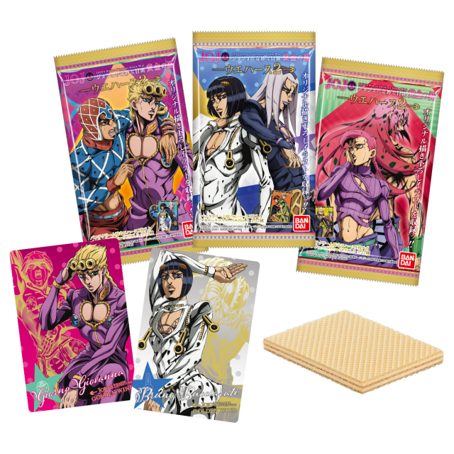 日本 BANDAI 萬代玩具公司旗下食玩事業部「BANDAI CANDY」,與人氣動漫作品《JoJo 的奇妙冒險第五部黃金之風》聯名推出「JoJo 的奇妙冒險黃金之風 威化餅 第二彈」,參考售價為一包 150 日圓,預計將於 2021 年 3 月發售。