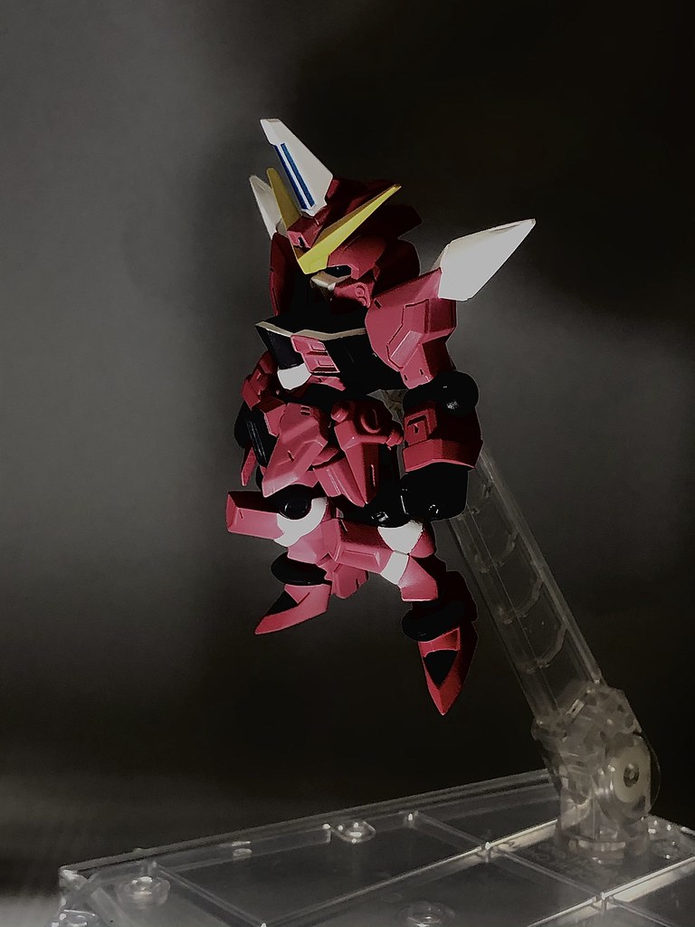 《機動戰士鋼彈SEED》中阿斯蘭·薩拉的後期專用機,最大特色就是背部搭載強大火力的無人機「Fatum-00」,配合本體出色的性能,可利用合體.分離機構進行高機動戰術。考量到機體尺寸,正義鋼彈很有可能像先前推出的自由鋼彈一般在 EX 彈登場,並同步推出流星裝備版本。
