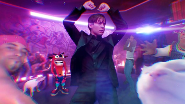 進去酒吧裡後,陶比開始跳起那最知名的「迷因舞蹈」,不僅如此,畫面中除了陶比以外,還有其他看起來格外眼熟的角色也亂入在《電馭叛客2077》的世界中,包含「辣個自由的男人」也加入了這場派對之中。