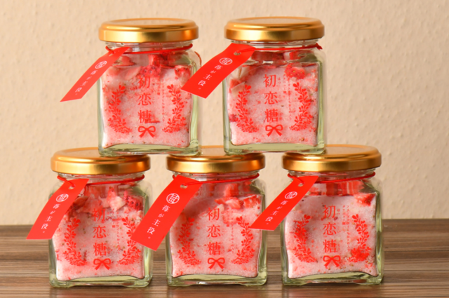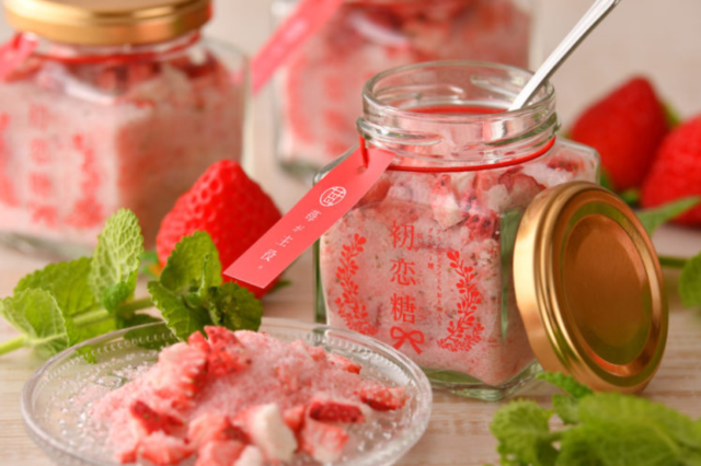 栃木縣產的草莓可說是日本關東地區市占率第一,有著非常可愛的名稱「栃木少女」,其實在日本超市也買的到。但「初戀糖」是以乾燥草莓果肉混上砂糖,聲稱帶有「栃木少女」的初戀香氣,適合加入到熱紅茶或是牛奶中一起飲用,草莓濃郁的香氣將瞬間散發出來。