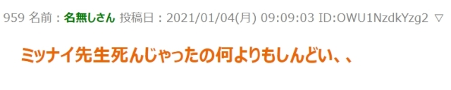 午夜時分(香山睡)因為有著性感的身材及撫媚且帶點S的性格,令這位角色在本作的男性讀者族群中有著極高的人氣,並且從初期就一直陪伴讀者走到現在,讓讀者都對他有了感情,而如今卻因此喪命,令許多網友都十分痛心。