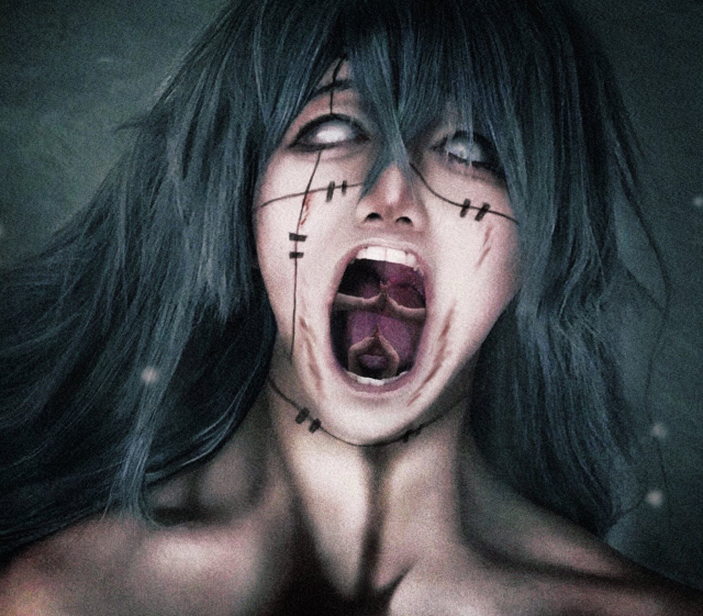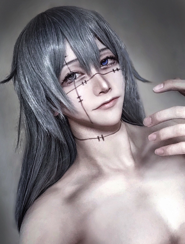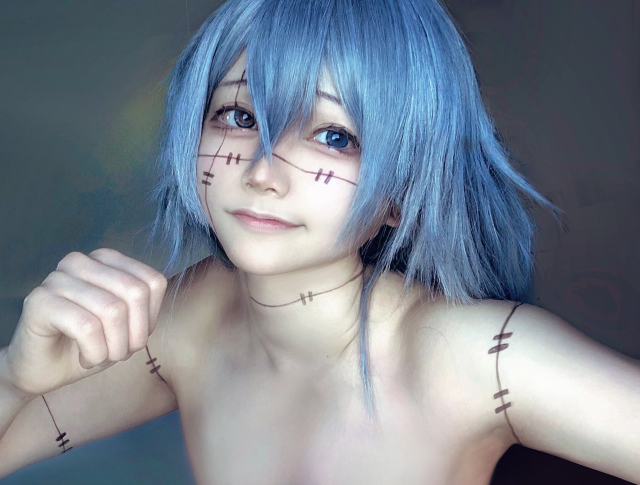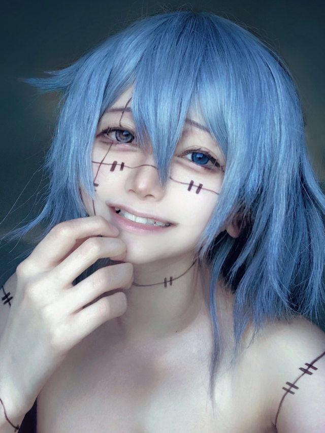 はーぴぃ 透過妝容還原了真人身上與面部的縫線特徵,也還原了真人特有的雙色瞳孔。邪惡又戲謔的神態讓許多日本網友都大讚還原度極高,又能保留 はーぴぃ本人的可愛的樣貌 XD。
