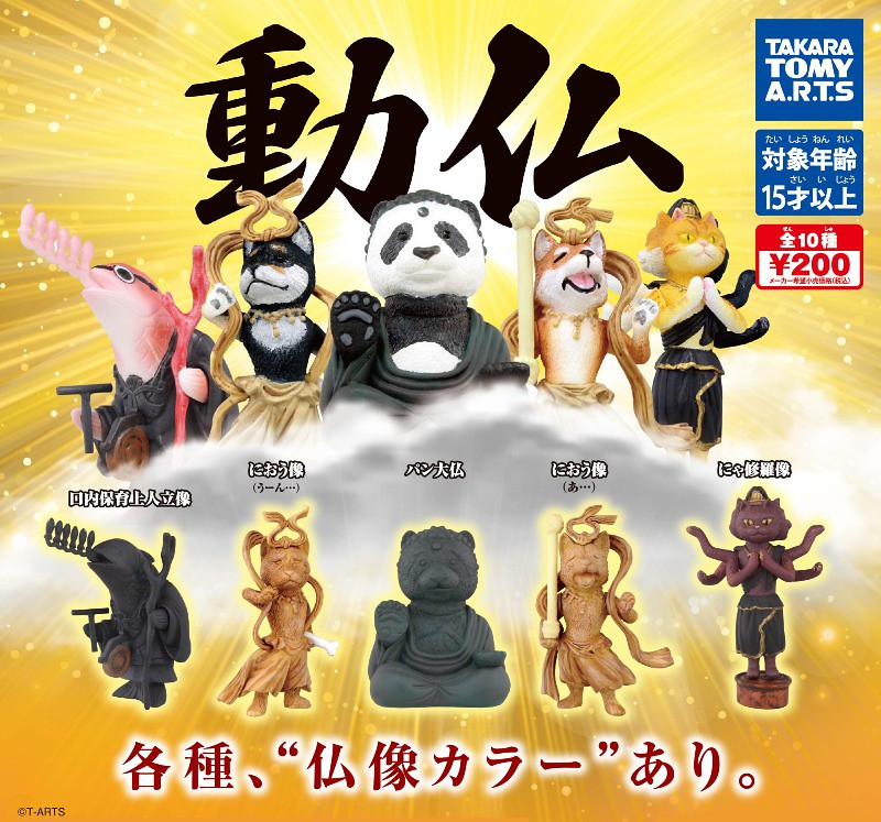 知名日本玩具公司 Takara Tomy(株式会社タカラトミーアーツ)旗下暢銷熱賣的轉蛋品牌 T - ARTS 也加入佛系之戰!將以可愛動物結合佛像,推出趣味的「動物佛」(暫譯,動仏)轉蛋,一共有十種款式,參考售價為一轉 200 日圓,預計將於2021年1月下旬發售!