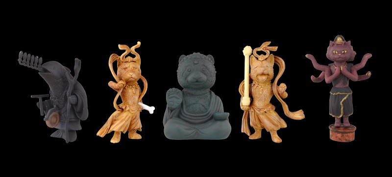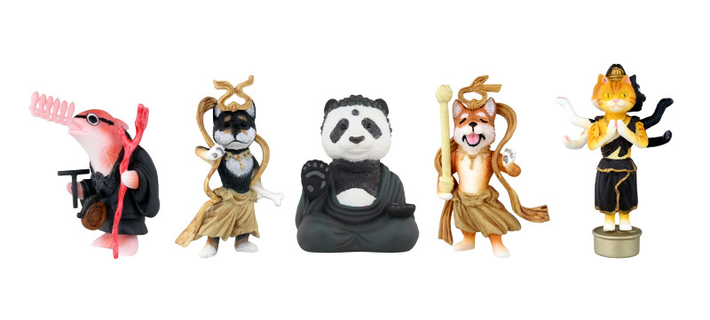 在Qualia 貓咪如來佛、 SK JAPAN 動佛像等佛性滿點的熱門轉蛋之後,這次 T - ARTS 的「動物佛」一次推出十種款式,除了具有各動物特色的塗裝配色之外,還有佛像顏色的版本~營造出佛像素雅沉穩的色調,每款尺寸約高4.5 ~ 5.5公分,陣容分別為:熊貓大佛、由狗狗化身的「哼哈二將」仁王像-打哈欠的啊...仁王狗、充滿困惑的嗯...仁王狗,以及貓咪阿修羅、鯉魚空也上人立像。透過日文的諧音梗去味將動物們巧妙結合佛像,不但造型爆笑可愛,精緻的細節也相當用心!