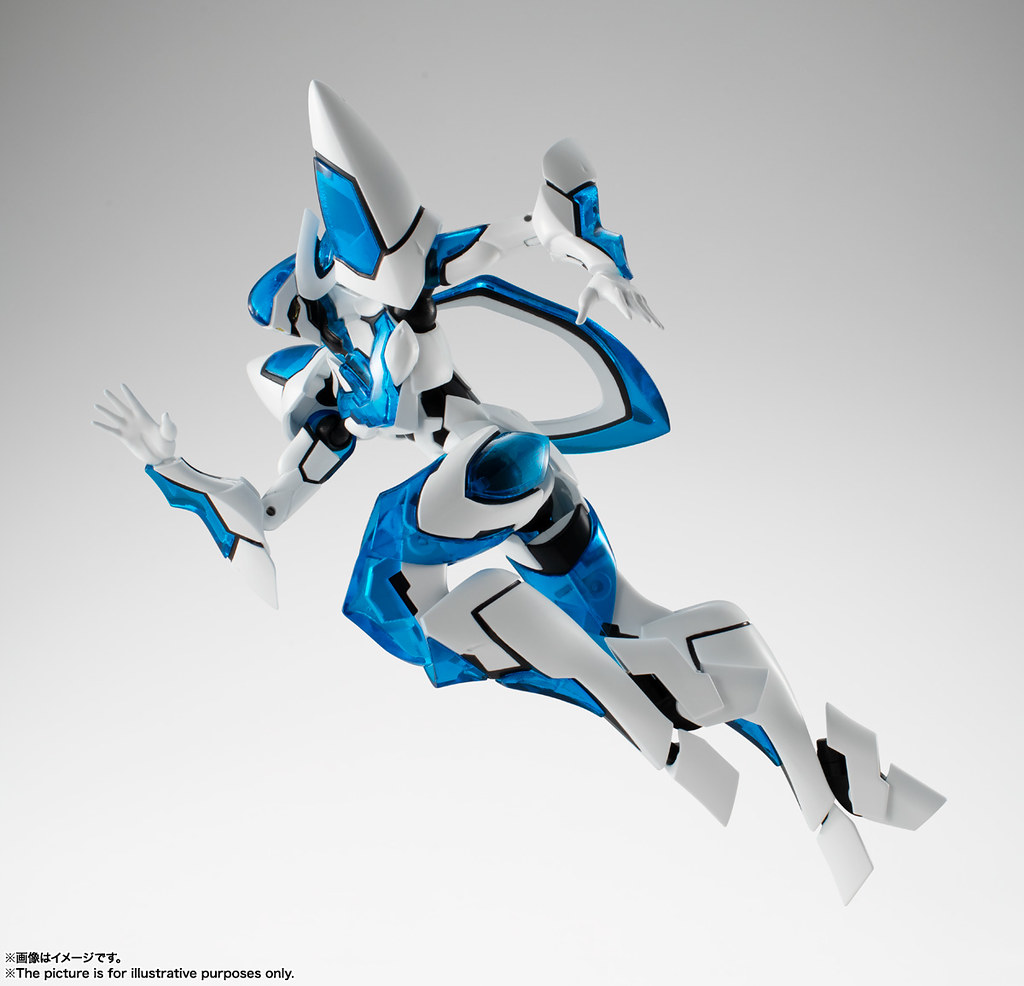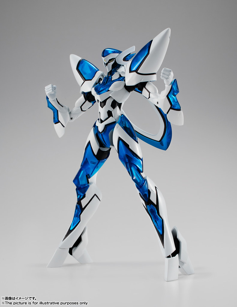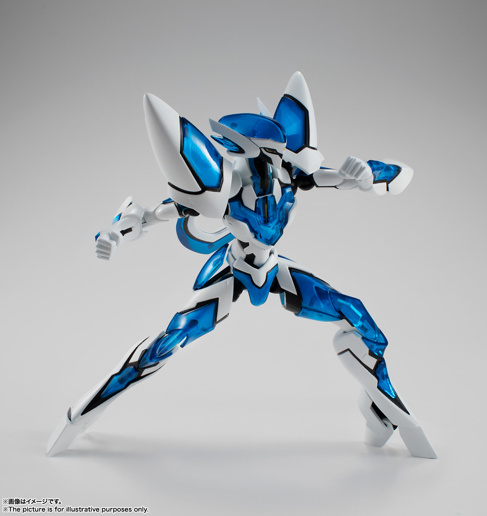 「ROBOT魂 <SIDE BH>信念機裝 MUGA」,將主角巴克・阿洛駕駛的信念機裝 MUGA 實體化,尺寸約高155mm,以透明藍色零件忠實還原機體上水晶般閃亮清透的特徵造型,整體外觀俐落帥氣兼具靈活的可動設計,精巧再現劇中動作!附有重現攻擊場景用的特效配件,搭配ROBOT魂 <SIDE BH>信念機裝 機漢,來場熱血的信念機戰對決吧!