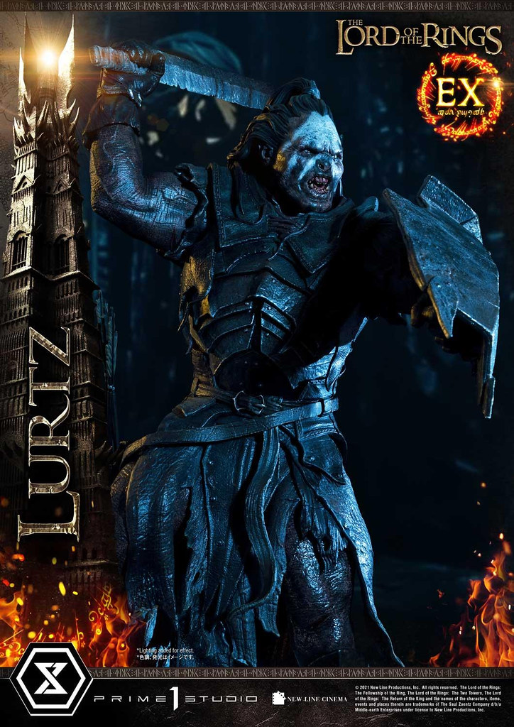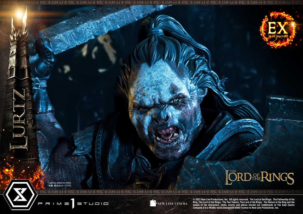 日本高端雕像廠牌 Prime 1 Studio 旗下的「Premium Masterline(プレミアムマスターライン)」系列在推出「索倫」、「甘道夫 VS 炎魔」、「亞拉岡」、「強獸人狂戰士」、「勒苟拉斯」之後,日前再度發表出自電影《魔戒首部曲:魔戒現身》的新作強獸人「盧茲」(Lurtz) 1/4 比例全身雕像,並將同步推出普通版與 EX版,預計 2022 年 4~7 月發貨。