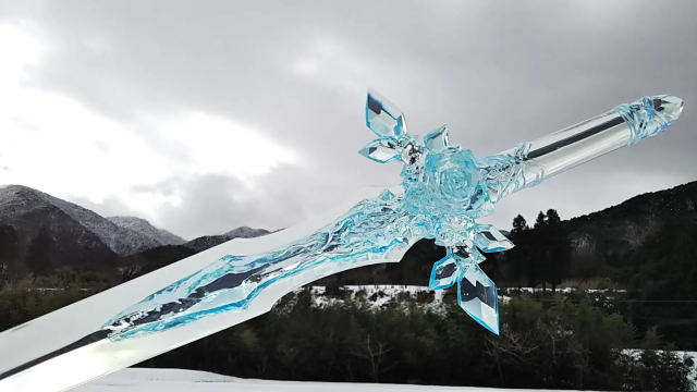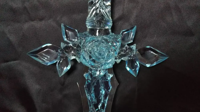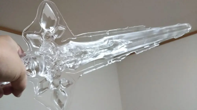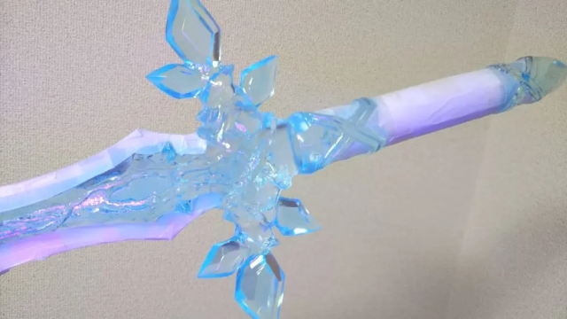 這把「藍薔薇之劍」是尤吉歐劇中的專屬神器,後續桐人也在劇情中使用。推主網友ゆづパパ透過透明樹脂製作,讓劍可以呈現透明又具有藍色的樣貌,宛如冰晶一般的質感,讓不少網友看到也嘖嘖稱奇。